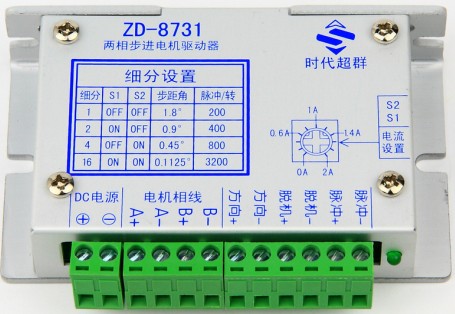 ZD-8731 步進驅(qū)動器產(chǎn)品特點: l 高集成度高可靠性 l 接口采用超高速光耦隔離 l 抗高頻干擾能力強 l ****輸入電壓:DC 36V(峰值) ZD-8731 步進驅(qū)動器主要功能: l 整步、二細分、四細分、十六細分可調(diào) l 過熱自動保護 l 輸出限流線性可調(diào):0A-2A l 自動半流鎖定 l 具有短路保護功能 l 支持脫機、使能、鎖定等功能 為了方便客戶的隱秘工作需求我們還特別定制的無logo的其性價比功能一樣的